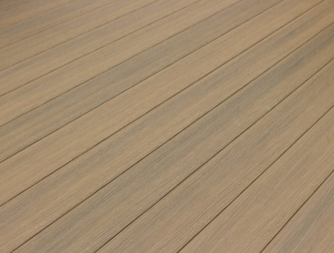 Nahtlose, massive Terrassendiele aus Verbundmaterial in Eiche gealtert