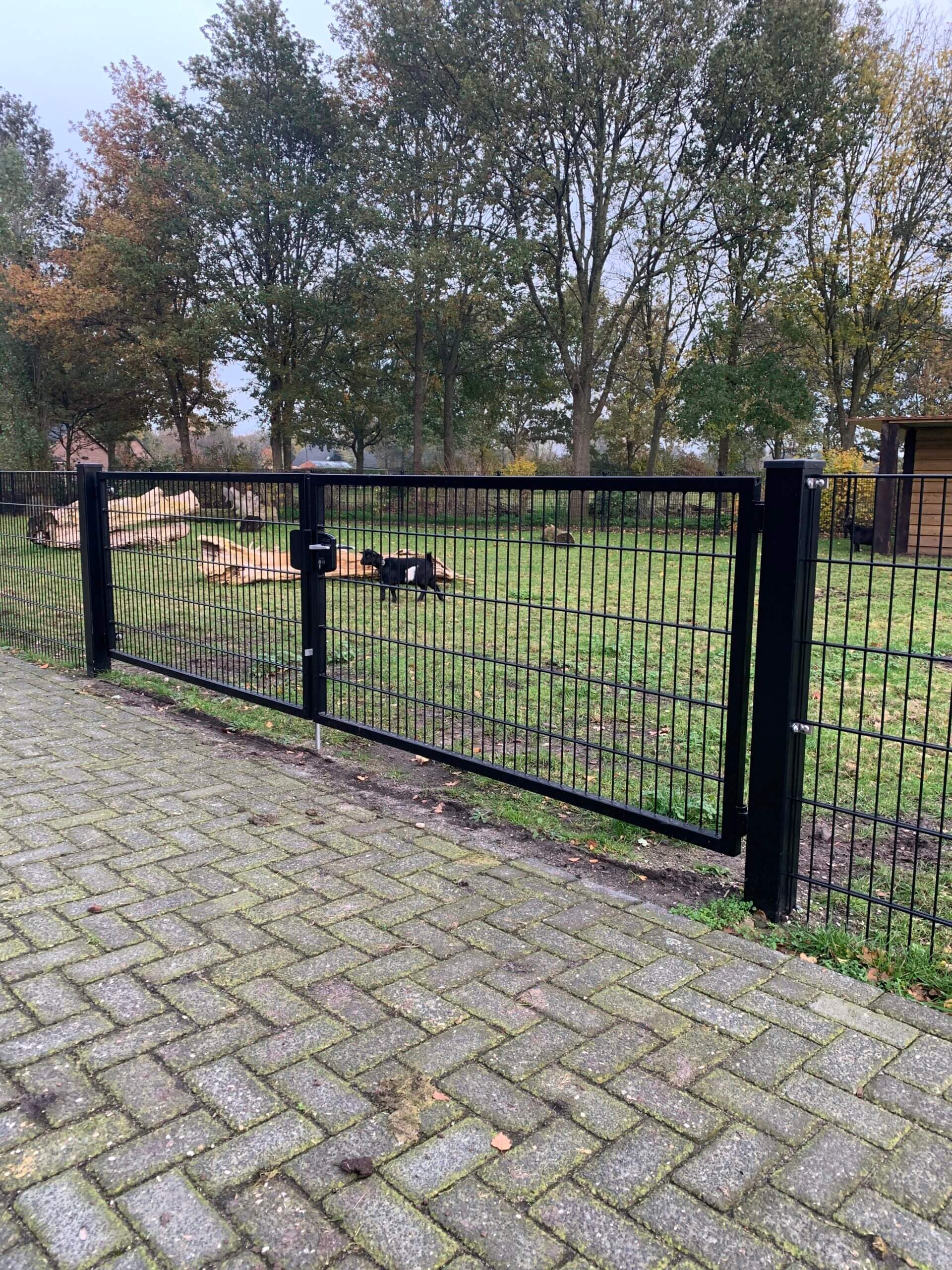 Möchtest du dieses doppelte Doppelstabmatten-Tor kaufen? Wähle die gewünschten Abmessungen, deine Lieblingsfarbe und die benötigte Menge aus, und wir liefern es dir komplett und unbeschädigt.