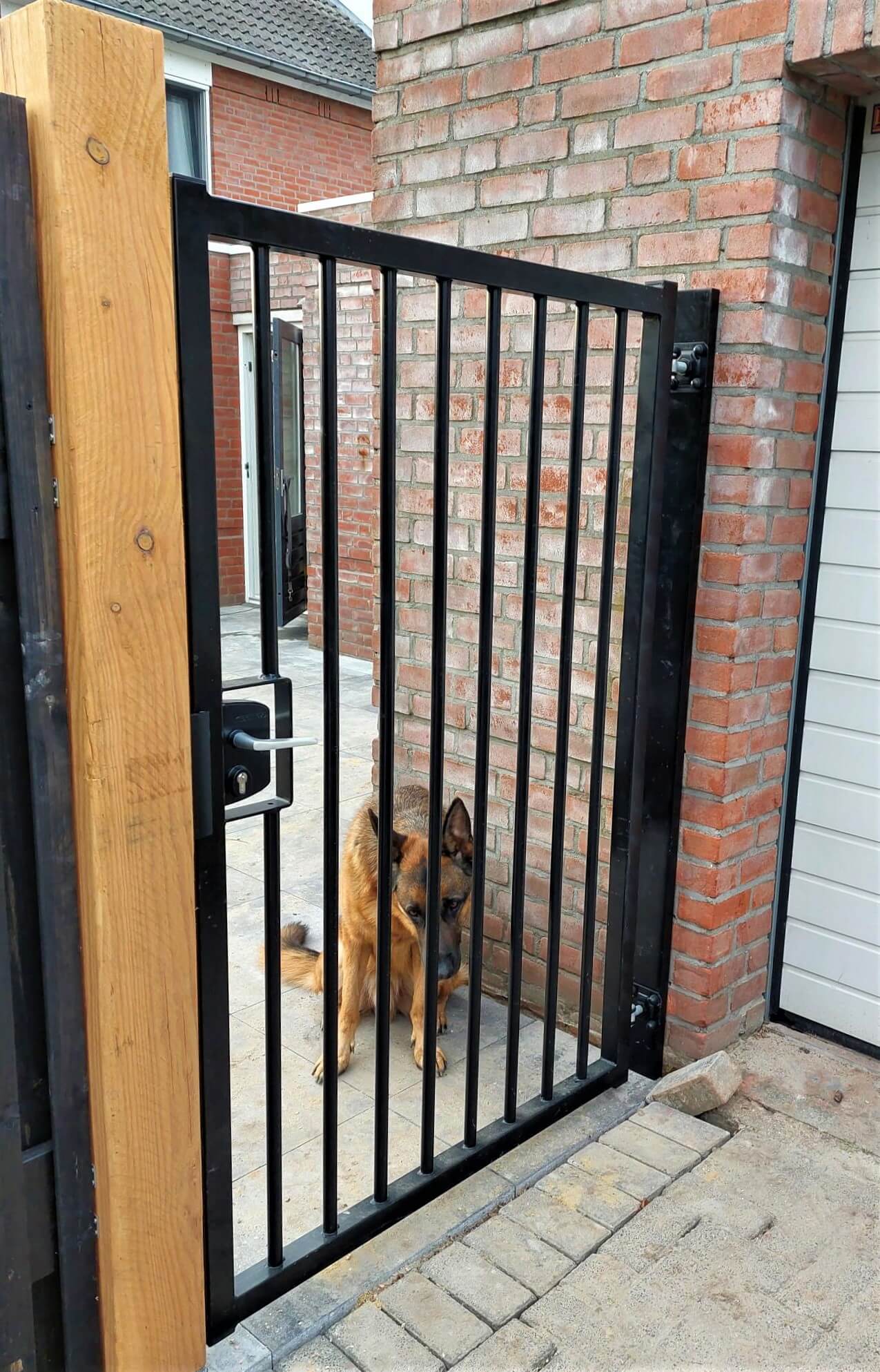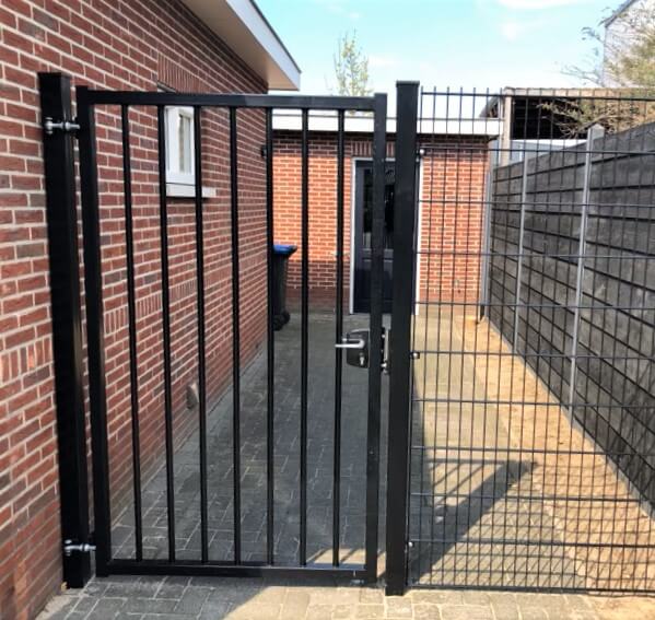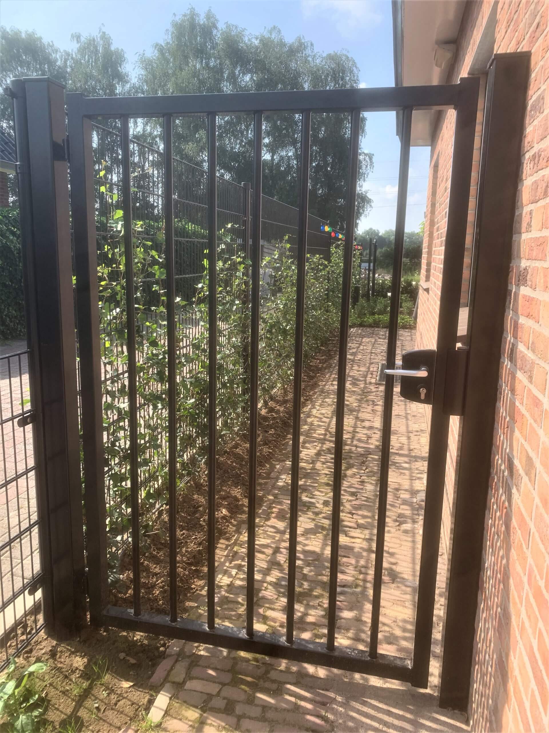 Dieses Tor ist robust, aber dennoch elegant. Das macht es zu einem echten Blickfang. Während sein Bruder, das durchgehende Stabtor, eine Oberseite mit durchgehenden Pfosten hat, ist dieses Tor glatt verarbeitet.